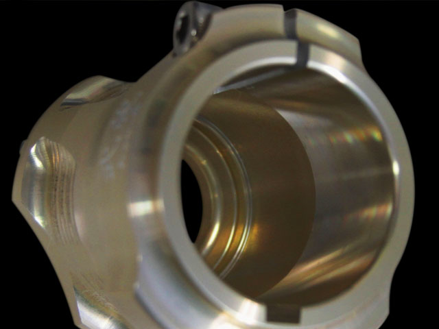 ハブ根元部分を異形にマシニング加工することにより、ハブ単体での重量バランスをとりました。
